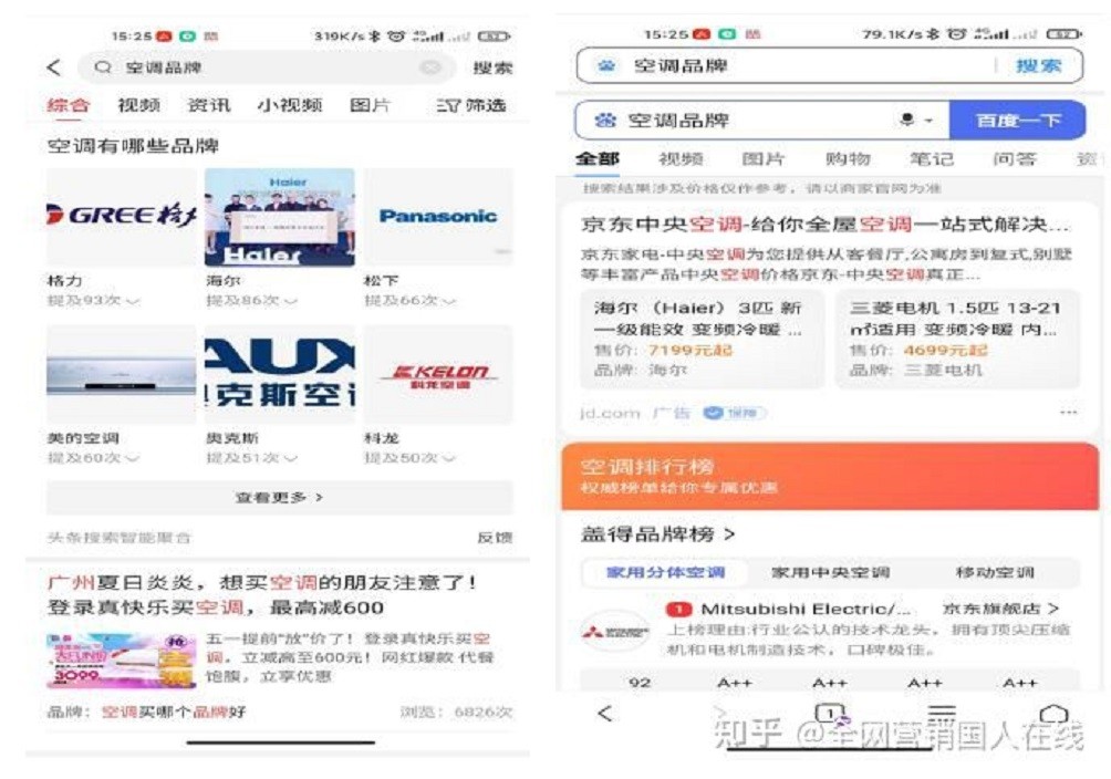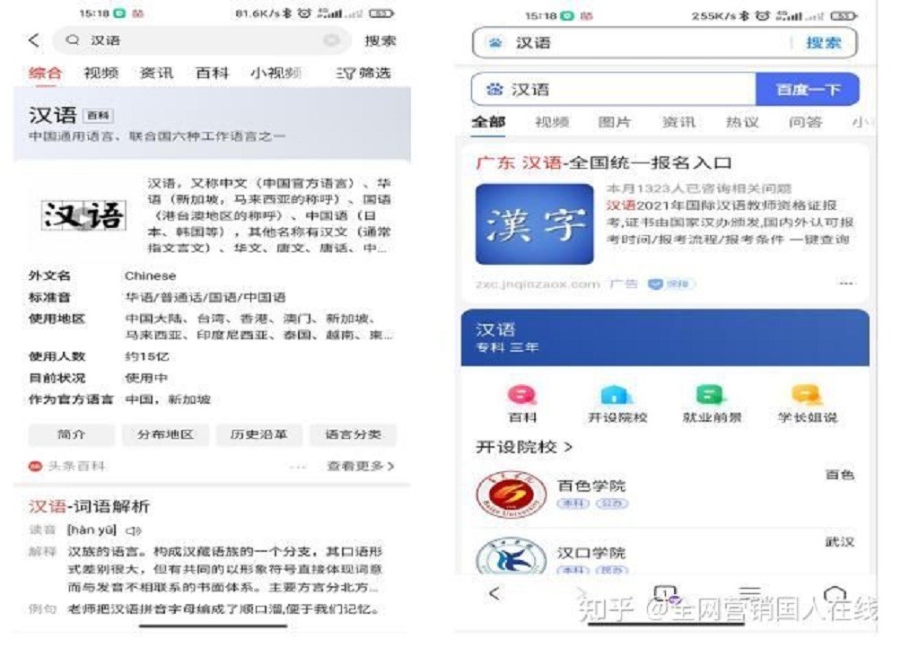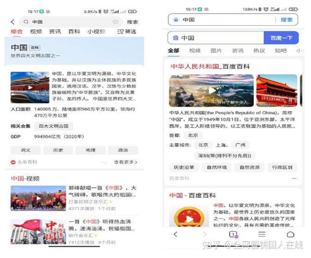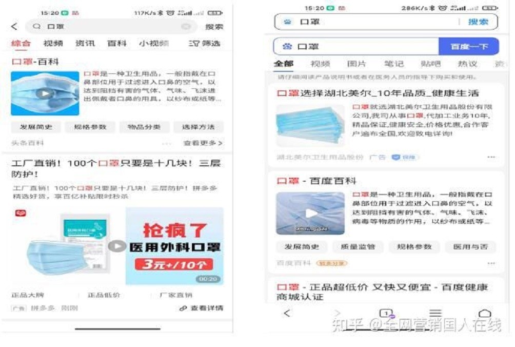 首先,頭條推廣主要包括頭條搜索,頭條信息流;百度推廣也主要以百度搜索和百度信息流為主,那頭條推廣與百度推廣的區(qū)別到底是什么呢?那么我們就一起來看看兩個平臺的搜索結果對比,左邊頭條,右邊百度。