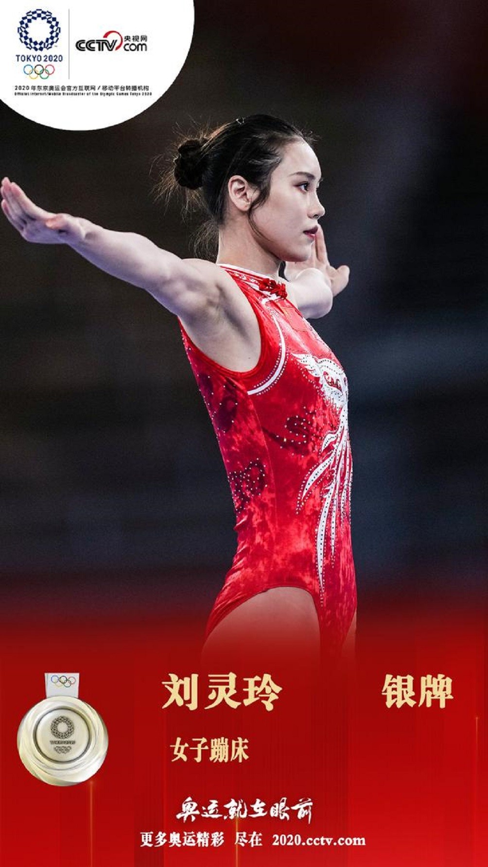 資格賽總分第一的劉靈玲最后一個登場。比賽中,她動作完成得也很漂亮,但最終因完成度和水平位移分?jǐn)?shù)不如隊友朱雪瑩,在難度相同的情況下,最終獲得了56.350分,收獲銀牌。資格賽第二的朱雪瑩獲得金牌,英國選手佩奇獲得銅牌,衛(wèi)冕冠軍麥克倫南收獲第四。